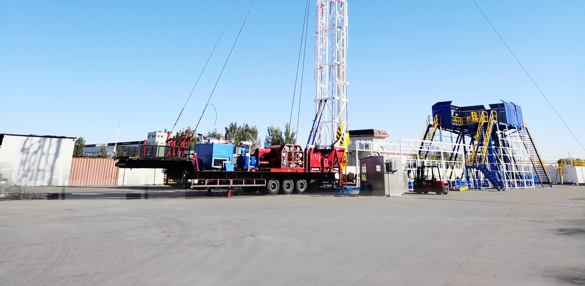 拖裝鉆機的動力、絞車、井架、游車系統及傳動機構全部裝載于半掛底盤上,移運時用牽引車拖掛移運至現場,該類產品對于提高鉆井作業(yè)搬遷效率具有很大的優(yōu)勢,適應于中淺井鉆井作業(yè)。